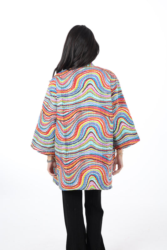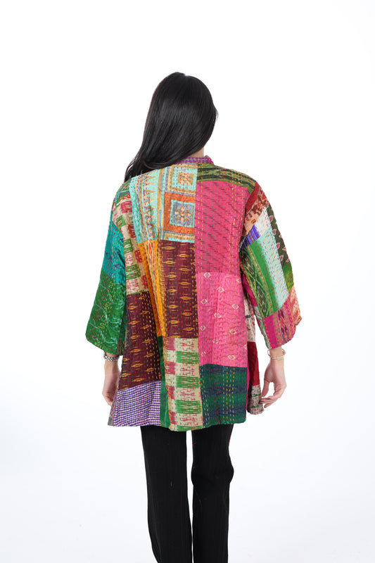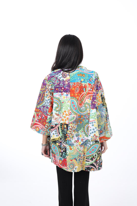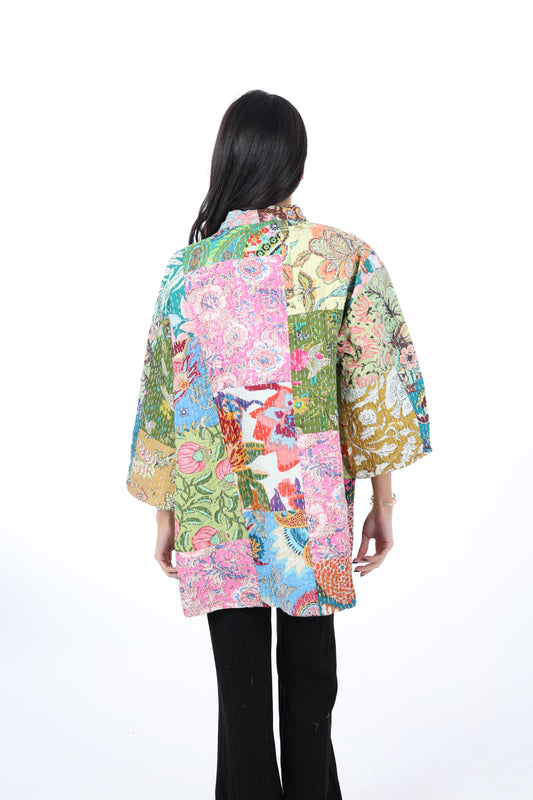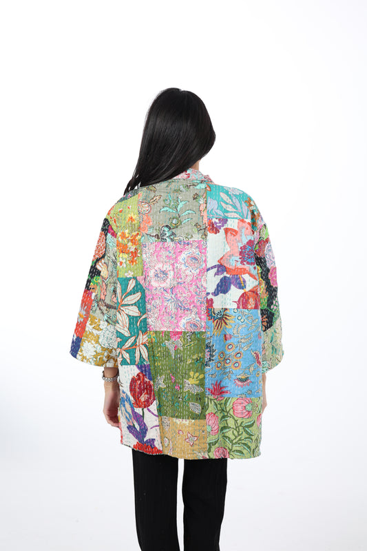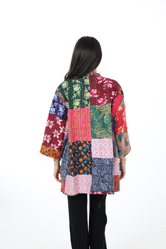 Wrap yourself in elegance with our colorful patchwork kimonos. Blending traditional charm with modern flair, these versatile pieces are perfect for layering or elevating any look. Crafted with care, they offer a cozy yet lightweight feel, bringing artful sophistication to your wardrobe.